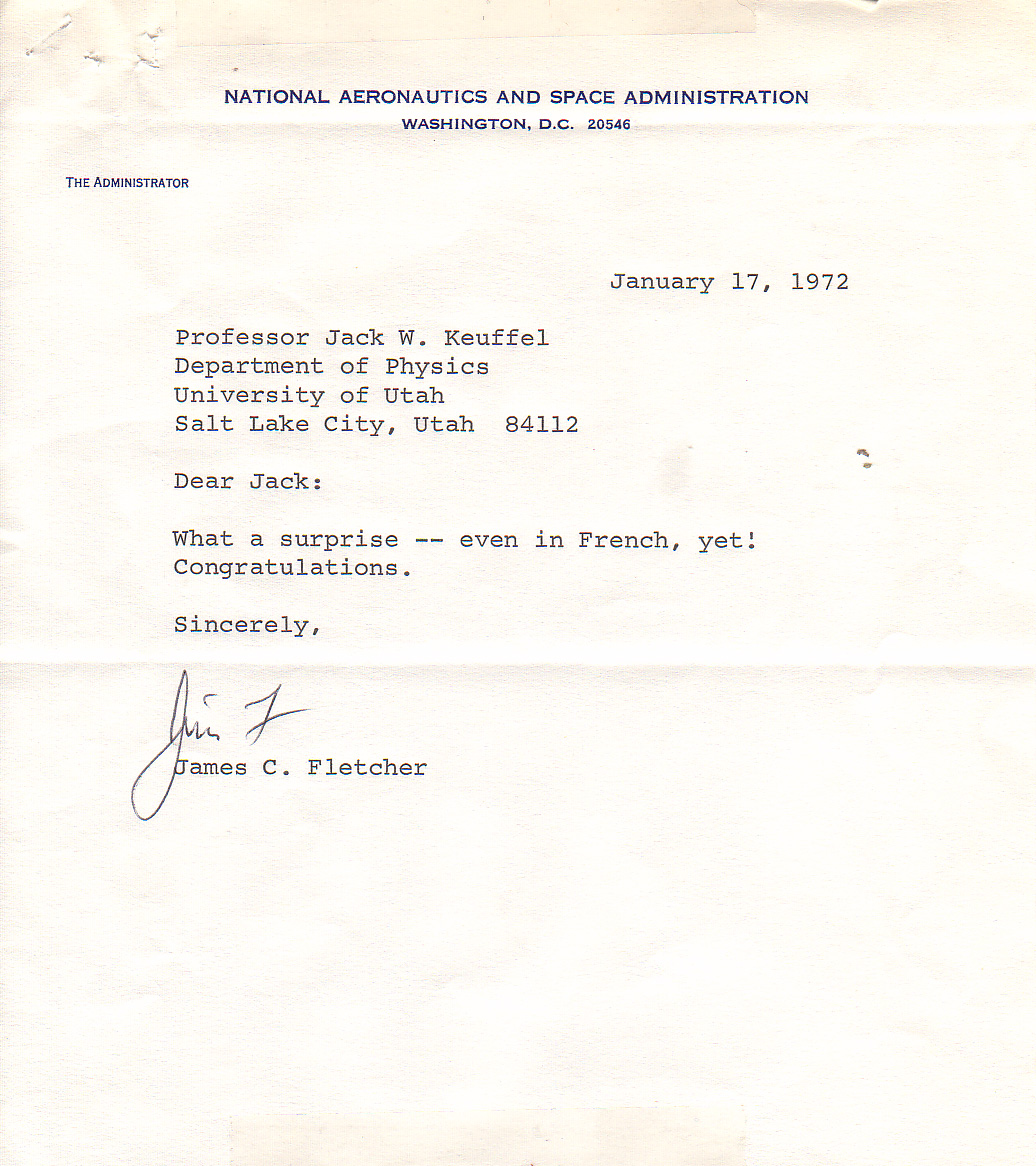to J. W. Keuffel, University of Utah