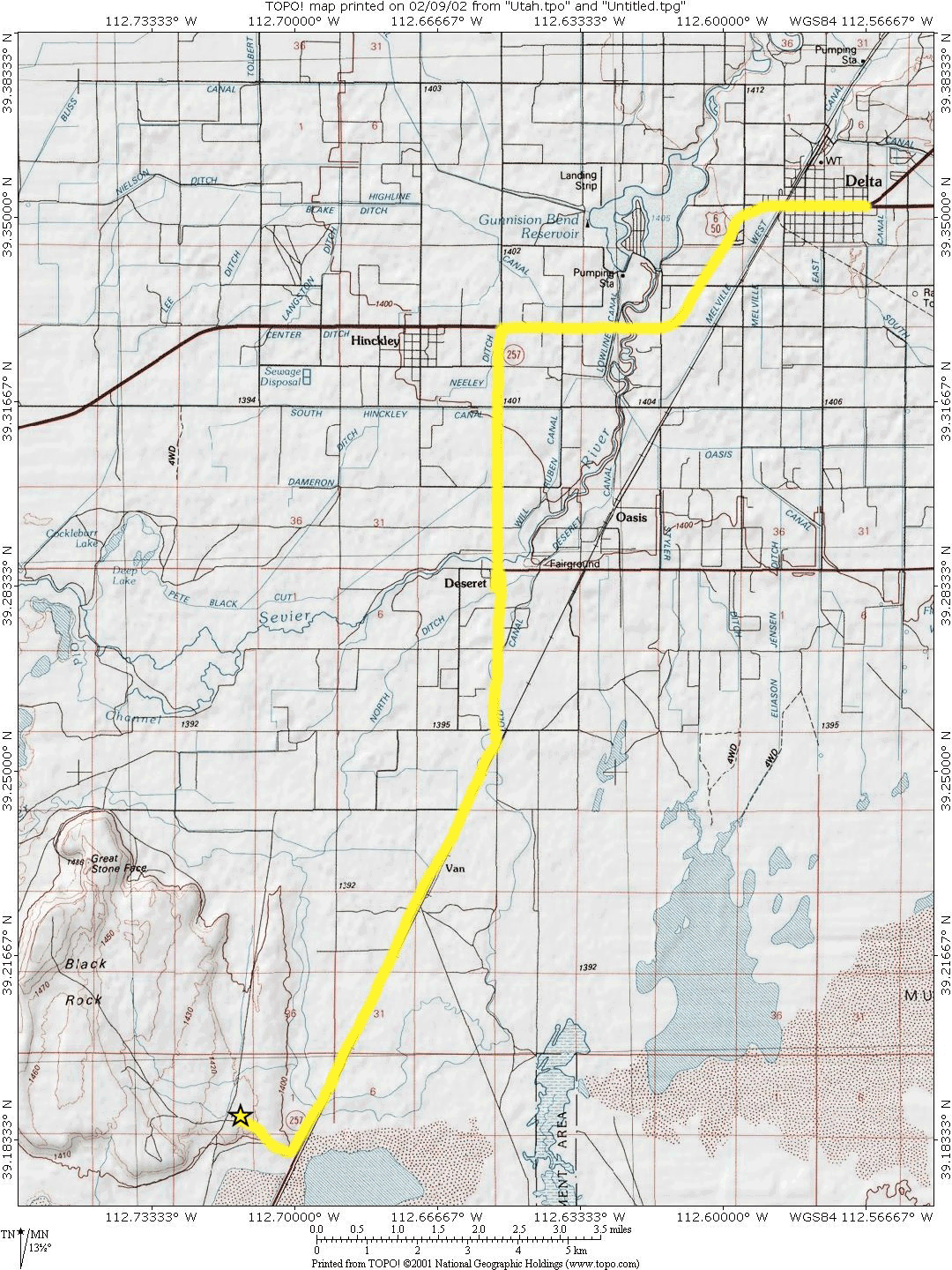 - Drive south along UT-257 continuing through Deseret. At 14.8 miles, take the dirt road to the right that leads up to our site atop